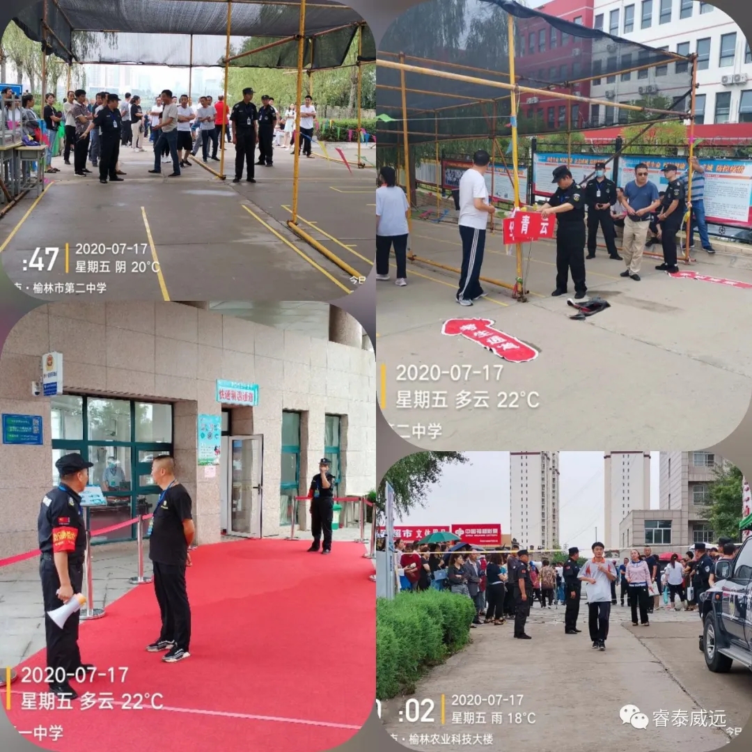 七月是奮斗的季節(jié)、是見(jiàn)證學(xué)子耕耘與收獲的季節(jié),7月17日早上“中考”大幕正式拉開(kāi)。為保證中考工作順利進(jìn)行,給考生營(yíng)造一個(gè)安全有序的應(yīng)考環(huán)境,公司增派安保人員,針對(duì)榆林市第一中學(xué)、第二中學(xué)、第六中學(xué)三所考點(diǎn)校園保安員進(jìn)行了前期訓(xùn)練,緊盯安全保密環(huán)節(jié),提升巡邏防控等級(jí),持續(xù)加強(qiáng)考點(diǎn)周邊治安檢查和隱患整治,全力以赴為中考保駕護(hù)航,在莘莘學(xué)子奔跑追夢(mèng)的路上,威遠(yuǎn)安保以高度的責(zé)任感和使命感,嚴(yán)守崗位,為廣大考生“保駕護(hù)航”。