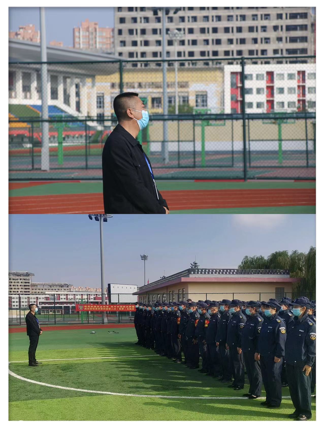 為進(jìn)一步加強(qiáng)校園保安隊(duì)伍建設(shè),提升保安隊(duì)伍履職能力水平,著力打造一支崗位形象好、作風(fēng)紀(jì)律嚴(yán)、素質(zhì)能力強(qiáng)的校園保安隊(duì)伍,根據(jù)校園治安形勢(shì)和安保任務(wù)需要,9月11日上午, 我集團(tuán)人防事業(yè)部二部部長(zhǎng)趙玉忠組織校園項(xiàng)目保安員在榆林市第一中學(xué)操場(chǎng)開展以“錘煉校園安全鐵軍 筑牢校園安全屏障”為主題的第四屆第二次(秋季)大練兵。通過計(jì)劃性、針對(duì)性的常態(tài)化訓(xùn)練,由表及里、由內(nèi)向外地磨煉隊(duì)員頑強(qiáng)意志力和保安服務(wù)技能,全面提升保安隊(duì)伍作風(fēng)形象。
