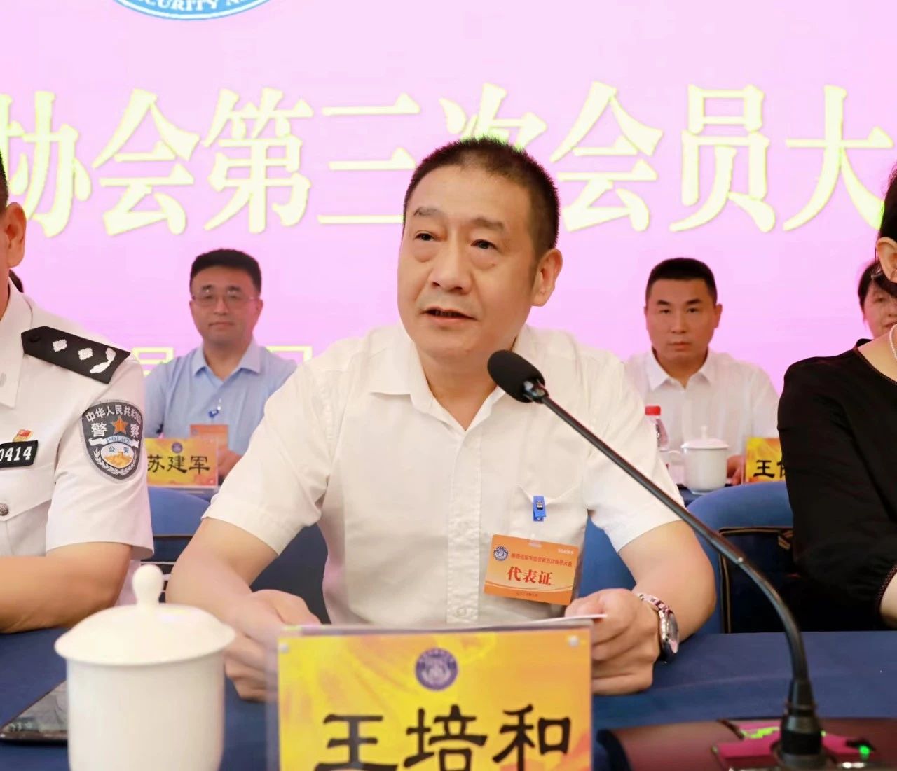 王培和會長代表第三屆理事會作了表態(tài)發(fā)言,他表示,新一屆保安協(xié)會領導集體,將以深入學習貫徹二十大精神為綱領,在省公安廳的正確領導和省民政廳的監(jiān)督指導下,積極應對新形勢,開拓新思路,落實新要求,迎接新挑戰(zhàn),始終堅持把服務保安企業(yè)作為我們的第一要務,把規(guī)范行業(yè)管理、推進行業(yè)發(fā)展、維護社會大局穩(wěn)定作為我們的最終目標,團結(jié)一心,銳意進取,認真履職,積極工作,奮力譜寫新時代陜西保安服務業(yè)高質(zhì)量發(fā)展新篇章,為建設平安陜西作出新的更大的貢獻!