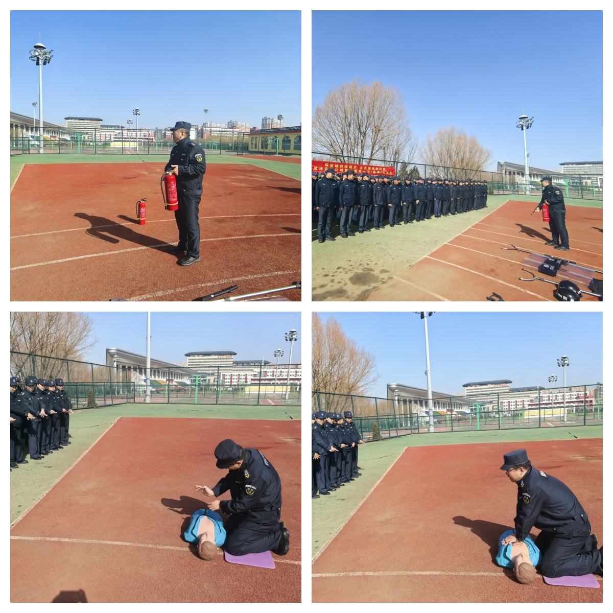 此次大練兵以集中組織形式開展,規(guī)范站立站姿,強化防暴器械使用、消防器材操作、急救技能(心肺復蘇)等專項課程。